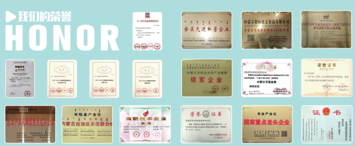憑借過硬的綜合實力,陰山優(yōu)麥先后被國家及自治區(qū)有關(guān)部門評定為“國家高新技術(shù)企業(yè)”、“農(nóng)業(yè)產(chǎn)業(yè)化國家級重點龍頭企業(yè)”,并榮獲“亞洲名優(yōu)品牌獎”、“中國品牌年度創(chuàng)新企業(yè)”、“中國燕麥健康食品行業(yè)品牌十強(qiáng)”等殊榮。